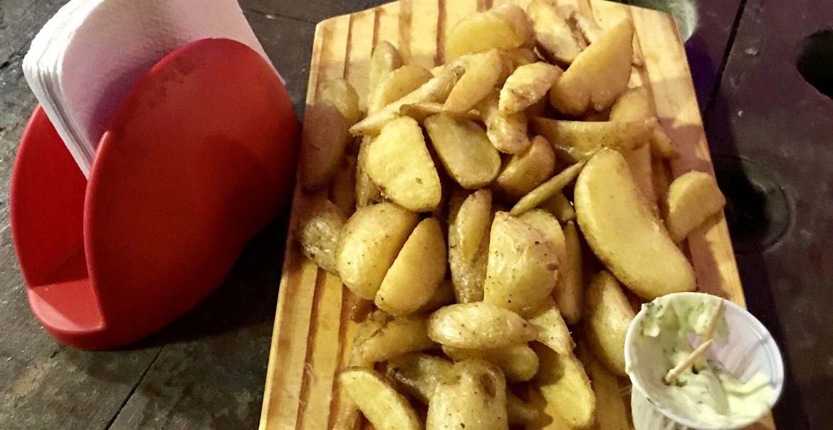 Um pequeno bar com apenas dois estilos de cerveja artesanal e poucas opções de petiscos.