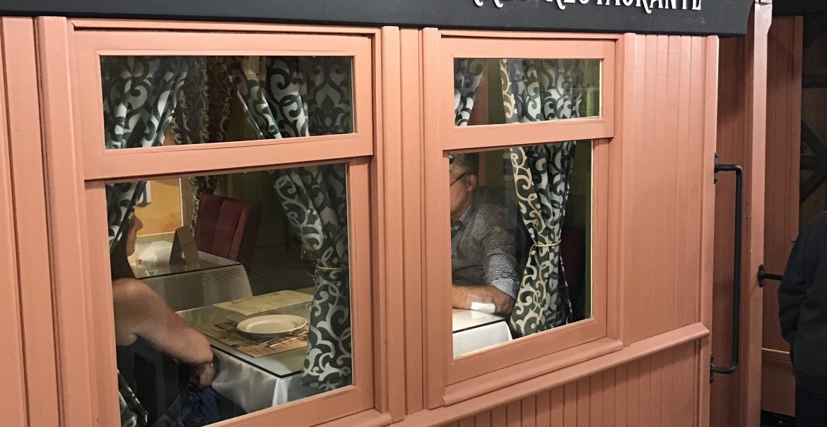 Dos 110 lugares que o restaurante oferece, alguns são especiais, dentro do vagão original do trem revitalizado pela Estação Campos de Canella. A ideia é brincar com a primeira classe do trem, onde bancos em veludo bordô, toalhas brancas e cortinas pomposas fazem o cliente entrar no clima.